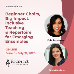 - Beginner Choirs, Big Impact: Inclusive Teaching & Repertoire for Emerging Ensembles (an upcoming Summer 2026 MECA course)